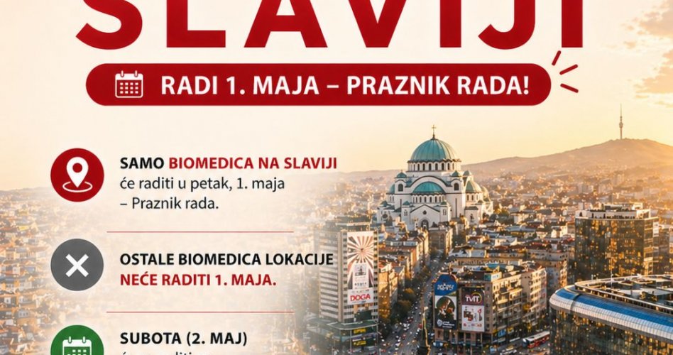 Na ovoj lokaciji Zavod Biomedica radi 24 časa. U toku celog radnog vremena možete izvaditi krv i predati uzorke za analizu. Rezultati se izdaju od 06 do 22h. Genitalni brisevi se uzimaju radnim danima od 07h do 20h, subotom od 08h do 18h i nedeljom od 10h do 15h. Zakazivanje u ovoj laboratoriji je potrebno za patronažnu službu koja dežura svakog dana od 07h do 20h, kao i za izvođenje OGTT testa (testa opterećenja glukozom). Uzorci za spermogram se primaju radnim danima od 10 do 12h.