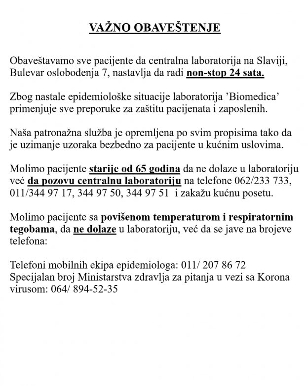 Biohemijske laboratorije “BioMedica” u Beogradu